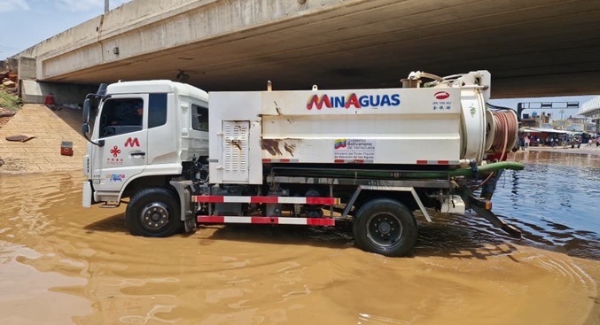 El gobernador del estado Zulia, Luis Caldera y su equipo de gobierno, también recorrió el centro de Maracaibo, donde con dos camiones ‘bacum’ lograron achicar el agua que inundó ese tramo de la avenida Libertador.