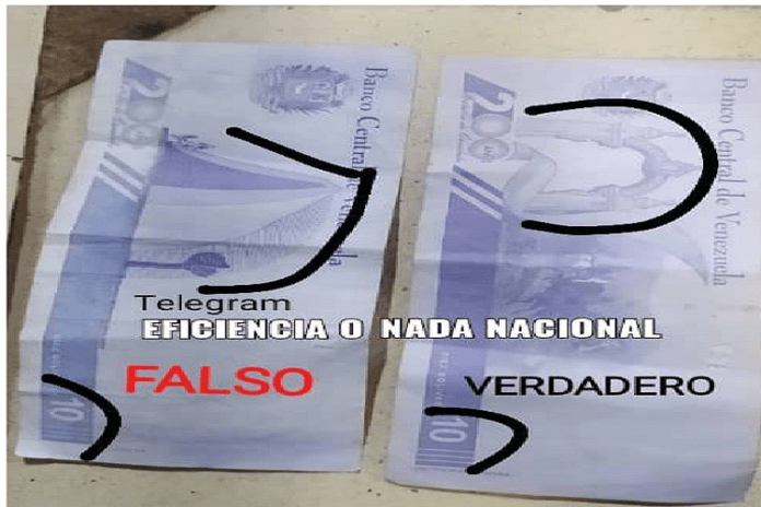 El grupo de Telegram «Eficiencia o nada» tambien alertó  sobre la presunta falsificación del billete.