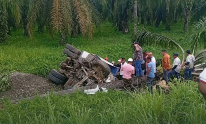 El conductor de un camión que se volcó en la carretera que conecta a Santa Bárbara del Zulia con El Vigía, a la altura del kilómetro 15, quedó atrapado dentro de la cabina del vehículo de carga, que llevaba granzón al momento de sufrir el aparatoso accidente.
