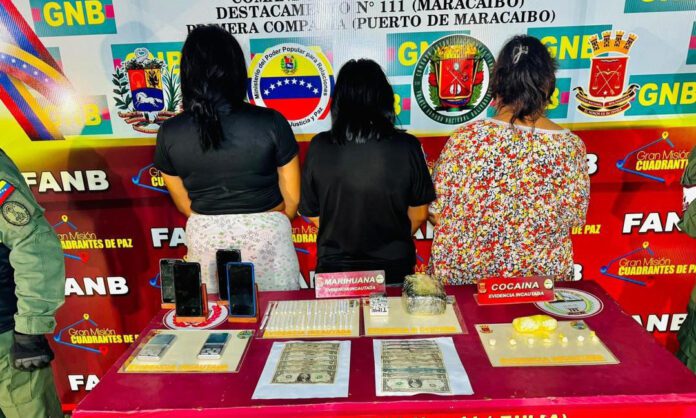 En un segundo operativo, ejecutado en el sector Las Tuberías, perteneciente a la parroquia Idelfonso Vásquez, una comisión del Destacamento 111, en colaboración con la URIA-11 Zulia, capturó en flagrancia a tres mujeres de la etnia wayuu: Yulimar Del Valle Ferrer González, de 34 años; Yenny Coromoto González, de 40 años; y Leydimar Carolina Fonseca González, de 20 años.