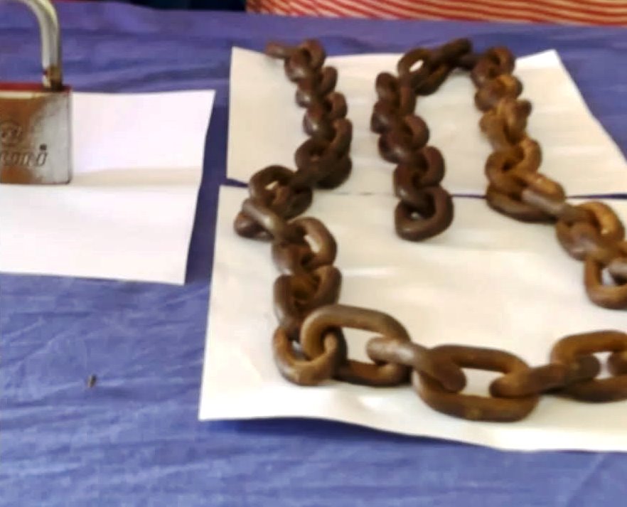 De acuerdo con la información policial, una comisión acudió al lugar tras recibir varias denuncias vecinales. Al ingresar al inmueble, los funcionarios hallaron al menor sentado en una silla, sin franela, en pantalones, descalzo y con una cadena de hierro ajustada al tobillo derecho mediante un candado.