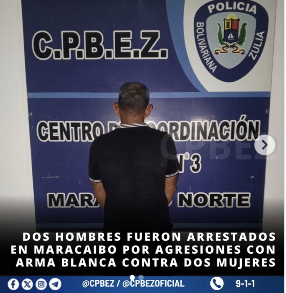 El Cuerpo de Policía Bolivariano del Estado Zulia (Cpbez) capturó a dos hombres en distintos puntos de Maracaibo por estar incursos en delitos contra la mujer, según información difundida este miércoles 15 de abril en redes sociales por el ente policial.