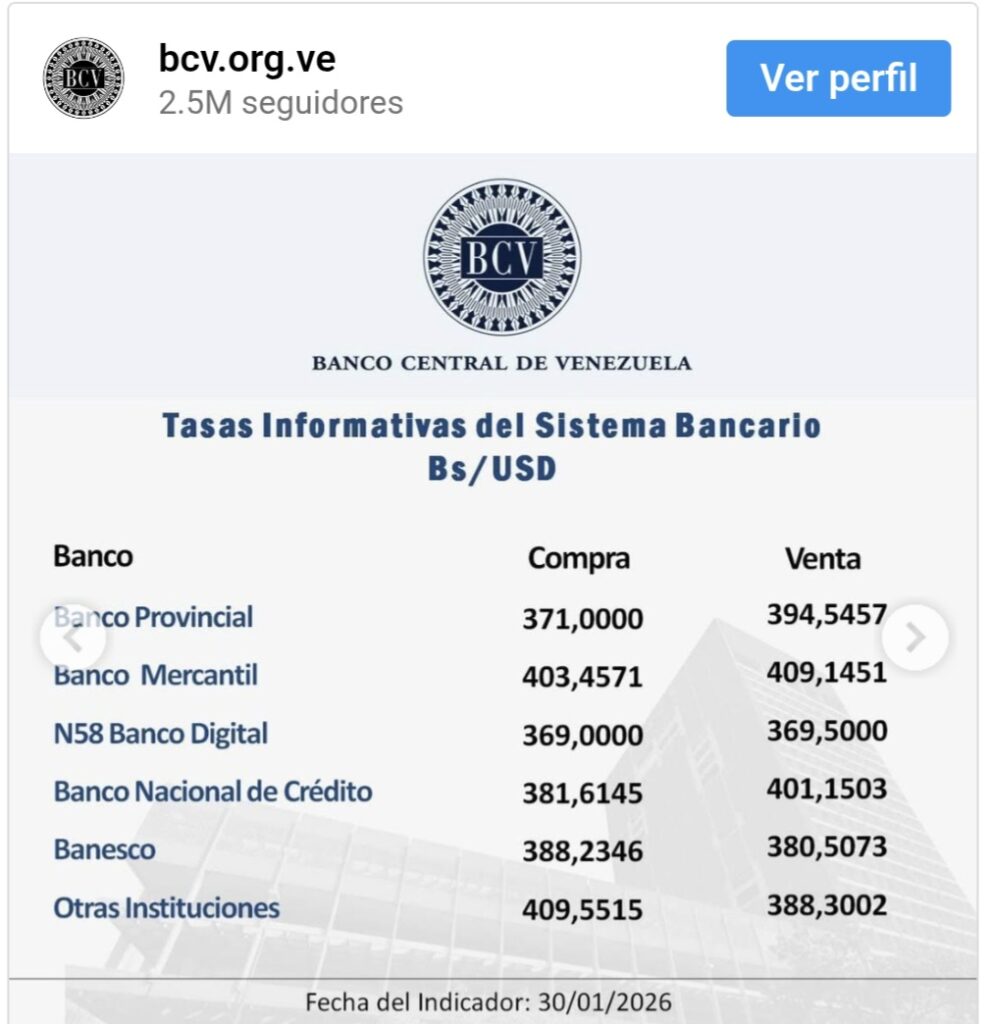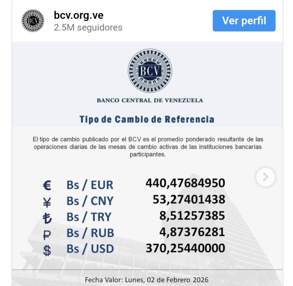 El tipo de cambio publicado por el BCV es el promedio ponderado de las operaciones de las mesas de cambio de las instituciones bancarias.