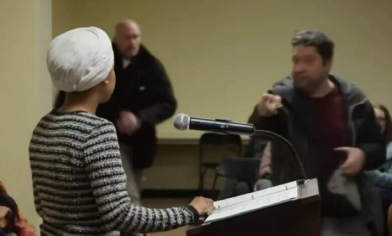 «Ataque en vivo: Un hombre rocía a Ilhan Omar con una jeringa durante un tenso foro en Mineápolis.»