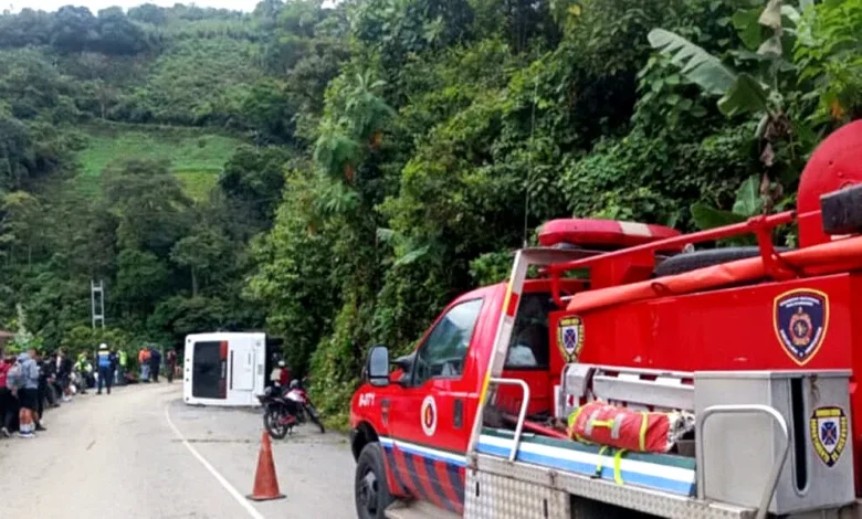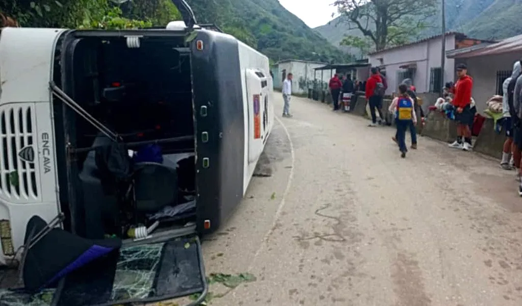 Un autobús que trasladaba a 23 integrantes del equipo Estudiantes de Mérida de Fútbol Sala se volcó en el sector La Raya del municipio Cardenal Quintero, con límite entre Barinas y Mérida.