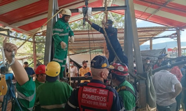 Desde el lunes, los Bomberos de Roscio trabajaban en el drenaje del agua y en la extracción de los cuerpos atrapados dentro de la mina.