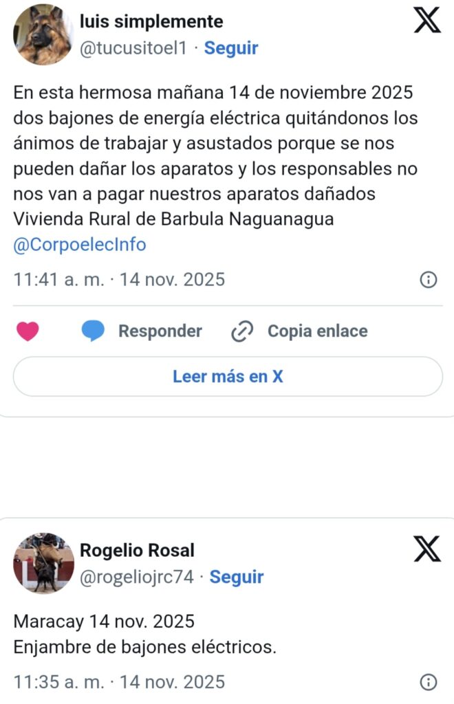 En las redes sociales, los usuarios han expresado su descontento ante esta situación y reportaron fallas en diferentes regiones del país como Aragua y Carabobo. Los internautas aseguran que se han registrado un «enjambre de bajones» en las últimas horas.