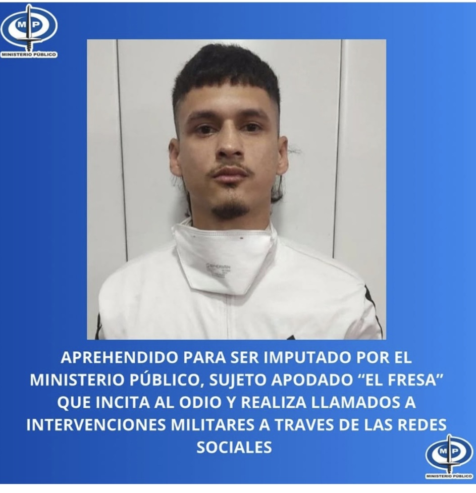 El titular del MP puntualizó que “El Fresa” es un “incitador al odio”, puesto que, emplea sus cuentas en redes sociales “para solicitar intervenciones militares en el país”.