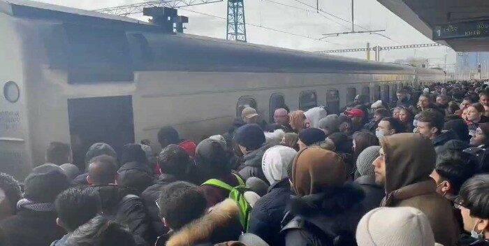 Cientos de personas abandonan Kiev en trenes este sábado 26 de febrero para tratar de huir de la ciudad antes una eventual toma de las fuerzas invasoras rusas.