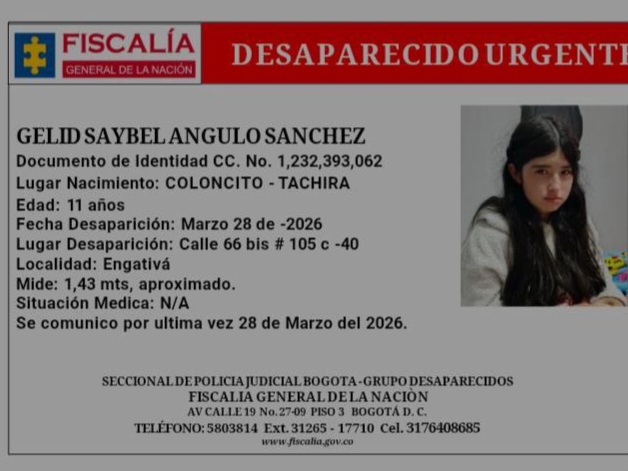 Desaparecida niña de 11 años: Gelid Saybel Angulo Sánchez es buscada en Engativá (+Video)