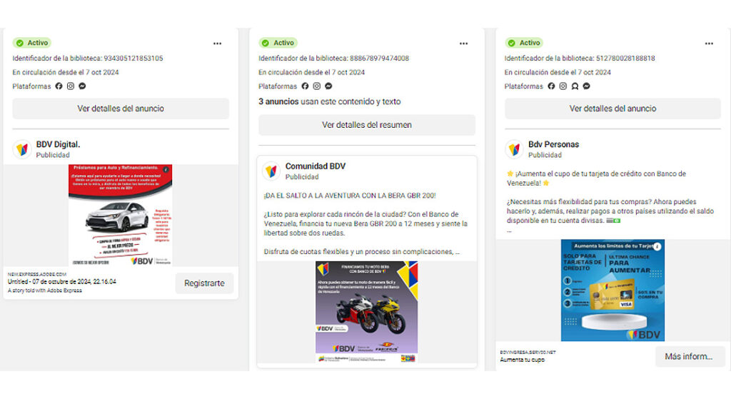 Estos enlaces dirigían a páginas web falsas que imitaban el diseño oficial del BDV. Al ingresar, las víctimas eran solicitadas con campos como: