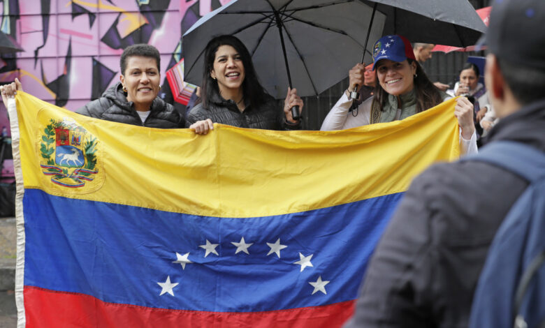 Venezolanos en Bogotá votan bajo la lluvia este domingo