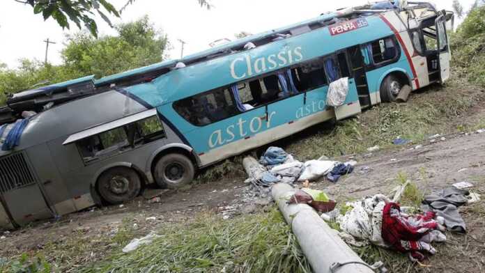 Diez personas murieron y más de 40 resultaron heridas en la madrugada de este viernes tras volcar un autobús en una carretera del estado brasileño de São Paulo, informaron las autoridades regionales.El autobús de dos pisos, que transportaba a medio centenar de personas, presentó un fallo mecánico durante el trayecto que hizo que el conductor perdiera el control y que el vehículo se estampase contra el pilar de un paso elevado, según medios locales.