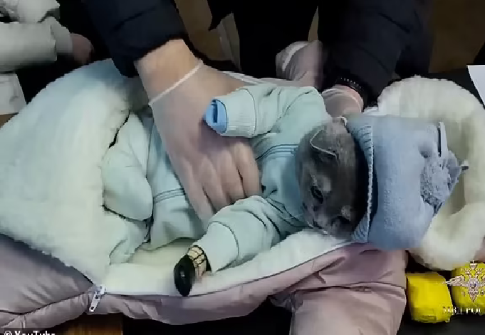 Una mujer rusa ha sido arrestada después de vestir a su gato para que pareciera un bebé para esconder su ropa con drogas.