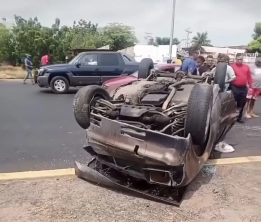 El primer accidente se registró la tarde de este jueves primero de enero en la Circunvación 1, frente a residencias Colinas de Maracaibo, cuando un vehículo perdió el control y se estrelló contra un árbol ubicado en la isla, arrancándo de raíz, para luego volcarse y quedar en el pavimento con los cauchos hacia arriba.