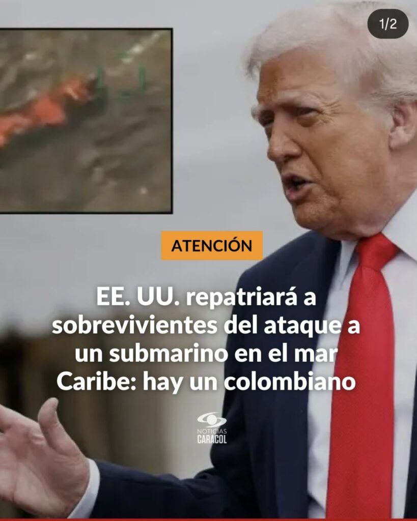El gobierno de Estados Unidos tiene previsto repatriar a un ecuatoriano y un colombiano que sobrevivieron al ataque contra un submarino en el Caribe que presuntamente transportaba droga, en el que murieron dos tripulantes, dijo este sábado Donald Trump.
