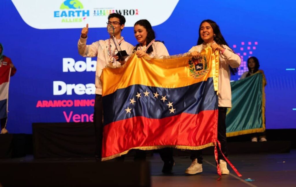 Venezuela logró el primer lugar en categoría Futuros Innovadores Senior, en la Olimpiada Mundial de Robótica Türkiye 2024.La delegación venezolana, del Programa Nacional Semillero Científico, conquistó este sábado el primer lugar en la categoría Futuros Innovadores Senior en la Olimpiada Mundial de Robótica, que se celebró en la provincia de Esmirna, Turquía.El equipo venezolano llamado Robótics Dreamers está conformado por los jóvenes Angelina Julieth Ferrer Romero, de 16 años, Mariana Patricia Sánchez García, de 16 años y Alfredo Alí Ríos, de 17 años de edad.