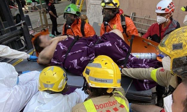 Después de comprobar que estaba bien y colocarle oxígeno, por las dificultades que tenía para respirar, los bomberos han iniciado las maniobras de rescate, que han culminado pasadas las 3.00 de la tarde, cuando han logrado con un montacargas sacarlo de la vivienda a través de la ventana. Los bomberos han intervenido con mascarillas y trajes de riesgo biológico. Fuentes policiales añaden que nunca habían actuado en una situación tan extrema, informó El País.