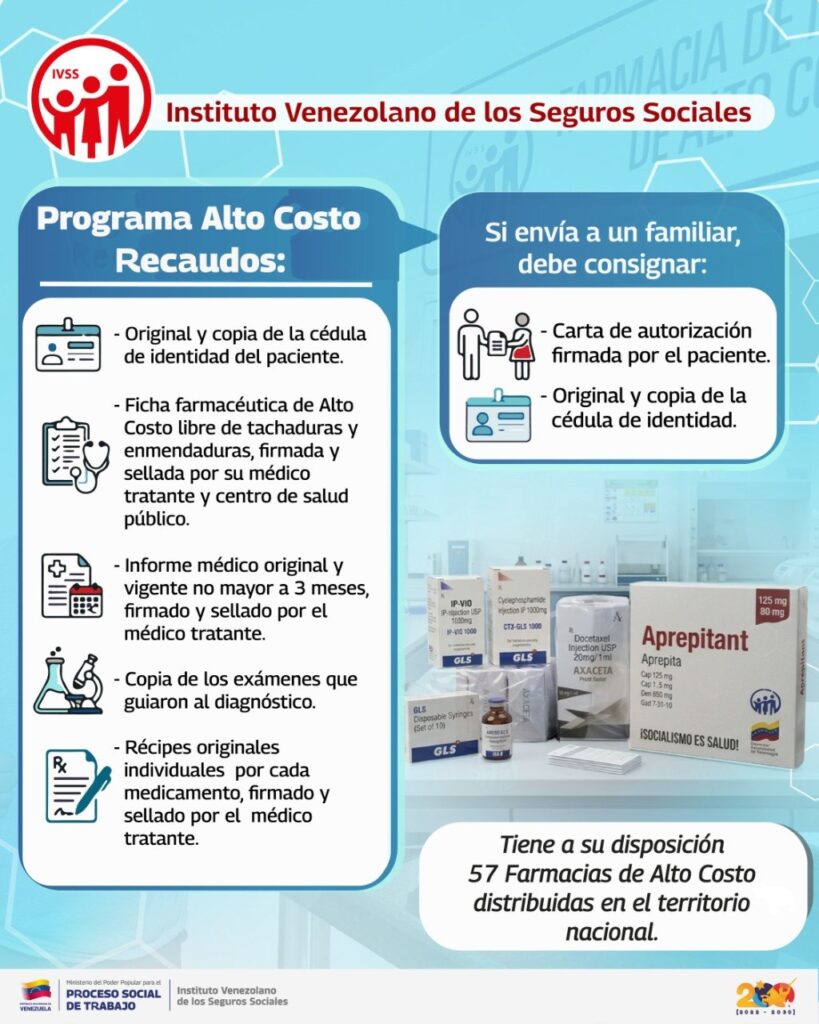 De acuerdo con una publicación del IVSS en sus redes sociales, los solicitantes tienen a su disposición 57 farmacias de alto costo distribuidas en todo el país.