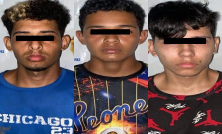 Los detenidos fueron identificados como Samuel Isaías Naranjo Páez (19 años), José Luis Jaramillo Berroyeta (19) y Darwin Eduardo Pino Canelón (18).