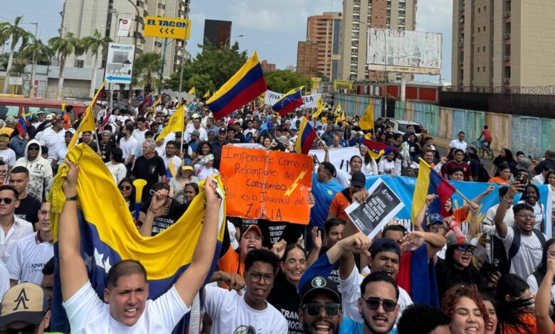 En Maracaibo, la movilización partió desde la esquina de El Tacón y avanzó por la avenida Delicias, acompañada de consignas, pancartas y presencia policial en distintos tramos del recorrido.