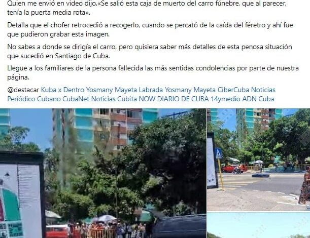 “Hace unas horas, un féretro se cayó de un carro fúnebre qué transitaba por la céntrica Avenida Victoriano Garzón de Santiago de Cuba”, escribió Mayeta, junto a un video y fotos que le hizo llegar una persona.