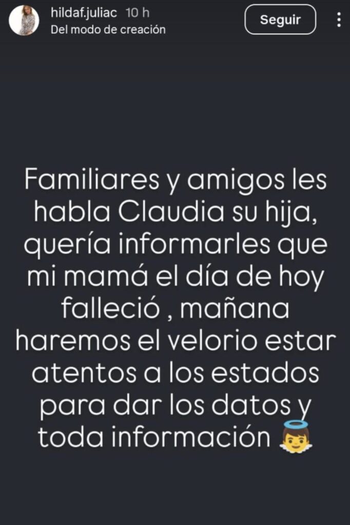 La noticia la confirmó una de sus hijas a través de las redes sociales, sin embargo, no dio mayores detalles.