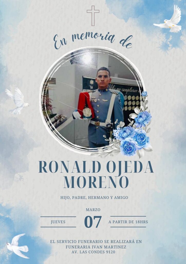 El teniente (r) Ronald Ojeda será sepultado el viernes 8 de marzo en Santiago de Chile. Sus restos serán llevados al Cementerio Parque Canaán, en la comuna Pudahel, al noroeste de la capital austra