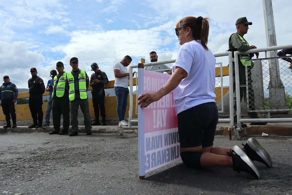 Colombianos que exigen la liberación de sus familiares detenidos en Venezuela se manifestaron este sábado en el puente internacional Simón Bolívar, que conecta a Cúcuta con la localidad venezolana de San Antonio del Táchira, para reclamar justicia y visibilizar su situación.Convocados bajo el lema «¡Libérenlos!», madres, padres, esposas e hijos se reunieron en la mitad del paso fronterizo con pancartas, fotografías y banderas de Colombia para exigir la libertad de al menos 40 connacionales que, según denuncian, fueron detenidos de forma arbitraria por las autoridades venezolanas.