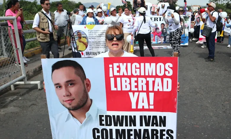 «Mi hijo, Edwin Iván Colmenares, es abogado y fue detenido hace casi un año cuando se dirigía desde Arauca hacia Cúcuta» por la zona de frontera, relató a EFE Dolly García, una de las manifestante