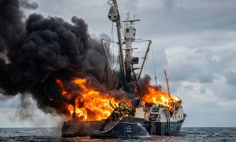 «Fuego en alta mar: Buque pesquero venezolano se incendia cerca de las Islas Galápagos; no hay víctimas.»
