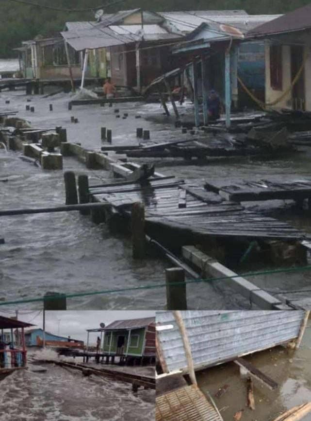 «El oleaje destruyó las caminerías de los palafitos de San Timoteo e inundó las calles, entre ellas la avenida principal. Hay que esperar que baje la marea para encender las bombas de achique y comenzar a sacar el agua. Bomberos están atendiendo los reportes también en Tomoporo de Agua y Ceuta», informó el alcalde de la entidad, Ramón Bracho.