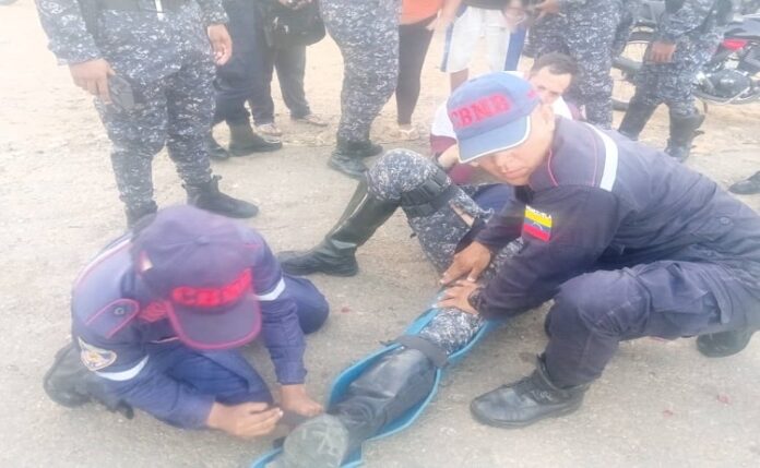 El oficial sufrió escoriaciones múltiples y posible fractura de tibia y peroné izquierdo, según paramédicos de Bomberos Urbanos de Coro quienes se ocuparon de estabilizarlo y llevarlo a la emergencia del Hospital de Coro después de particulares anticiparse en la atención.
