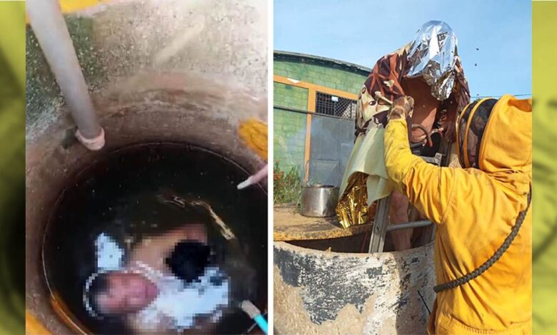 Hombre es rescatado de un tanque subterráneo donde lo ataca un enjambre de abejas