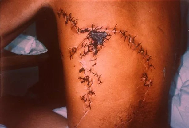 Tres cirujanos tardaron cuatro horas en curarlo. Sus heridas incluyeron un pulmón perforado, laceraciones profundas en la espalda y el pecho y una costilla rota, lo que significa que necesitó más de 300 puntos.