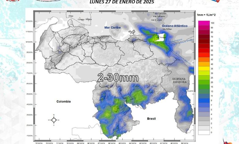 Inameh prevé lluvias en algunas áreas de Venezuela este 27 de enero