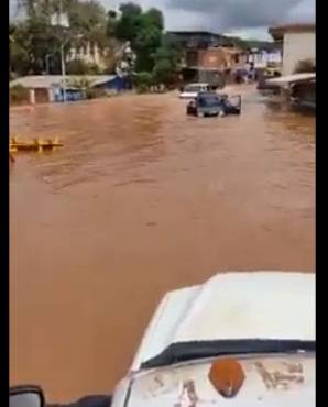 Tras el desbordamiento del río Uairén, en Santa Elena de Uairén del estado Bolívar, el agua alcanza ya más de un metro de alto.