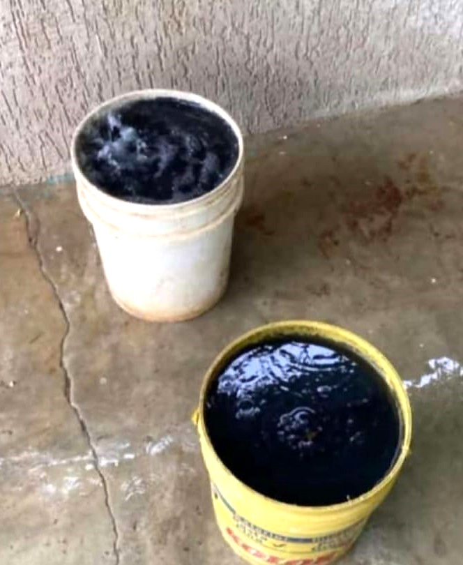 Otras personas, al ver la situación, llenaron tobos y vasos con el líquido negro.