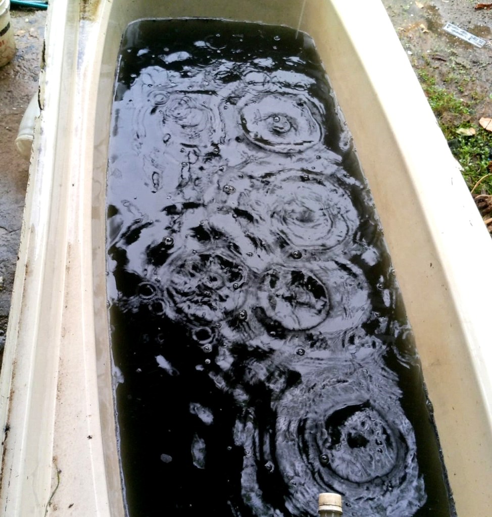 Los recipientes estaban llenos de agua con partículas de polvo de color negro.