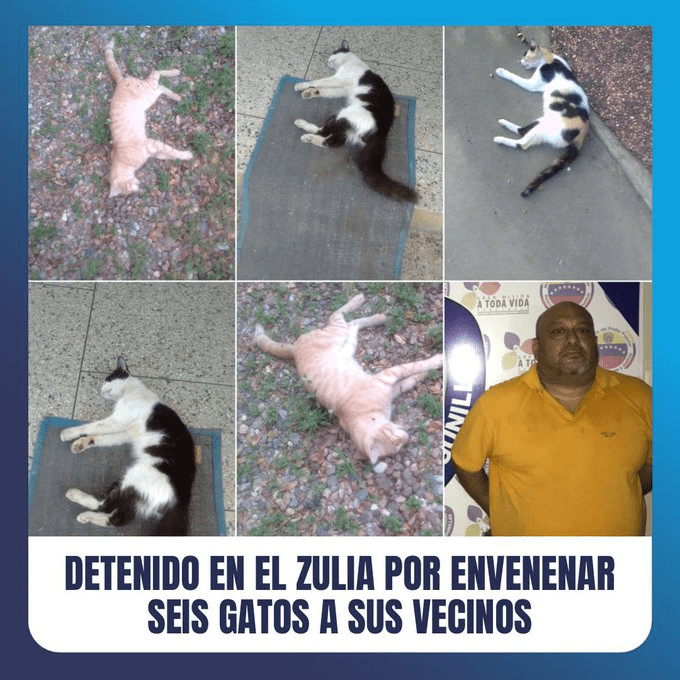 Un hombre identificado como Edison Enrique Villalobos fue imputado por matar seis gatos a sus vecinos utilizando veneno para ratas.