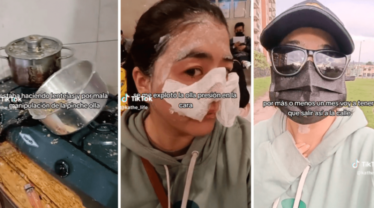 A través de un video de TikTok la joven relató que fue el 31 de mayo cuando «estaba haciendo lentejas y por mala manipulación de la pinche olla se me explotó en la cara. Me tocó irme de urgencias con mi novio», explicó.