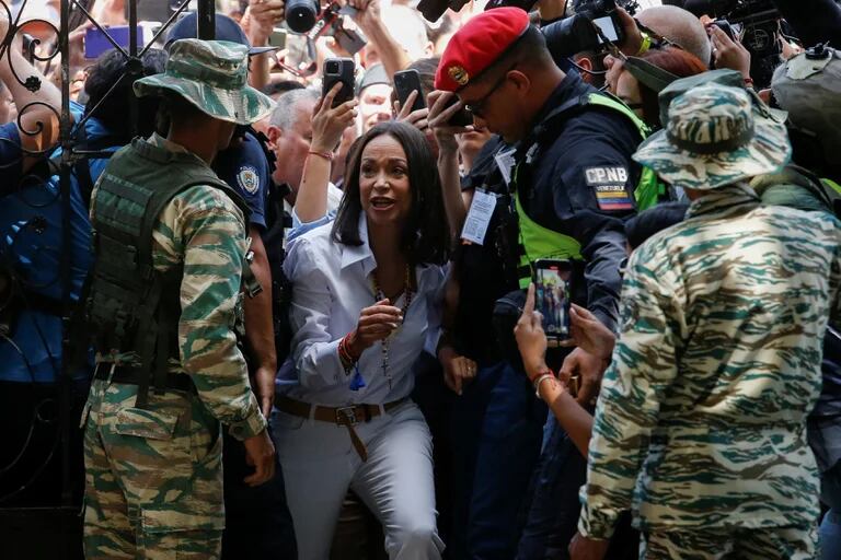 Antes de emitir su sufragio, la líder opositora tuvo que pedir a las autoridades que permitieran el ingreso de su equipo de campaña. A través del llamado “Plan República”, el régimen de Maduro impuso varias restricciones para la oposición durante la jornada electoral.