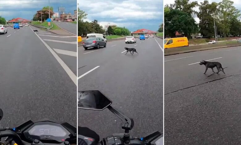 Motociclista rescató a un perrito en plena autopista y se hizo viral (+Video)