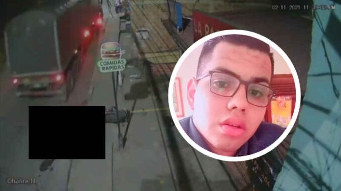De acuerdo al registro fílmico, el joven, al parecer, intentó adelantar un vehículo de carga pesada por el lado derecho, al mismo tiempo que el conductor de la pesada máquina se fue haciendo a un lado de la vía con la intención de darle espacio a otro camión que venía en sentido contrario, sin embargo, no se percató del motorizado y con las llantas traseras lo arrolló.