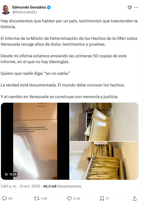 Edmundo González difunde informe de la ONU sobre violaciones a los DD. HH en Venezuela (+Detalles)