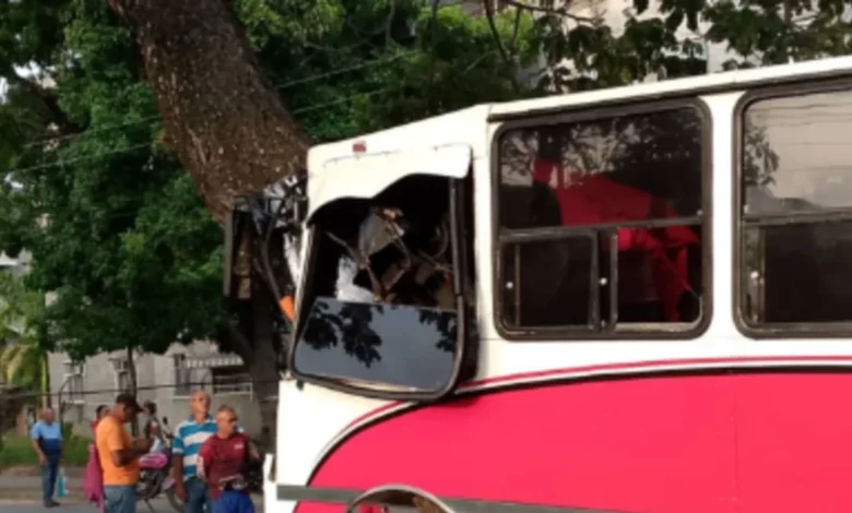 Autobús sin frenos impacta contra un árbol en Aragua: hay siete heridos