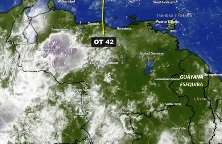 El Instituto Nacional de Meteorología e Hidrología (Inameh) informó este miércoles 8 de octubre que la Onda Tropical N.º 42 se desplaza sobre el centro de Venezuela, en interacción con la Zona de Convergencia Intertropical, lo que está generando abundante nubosidad y precipitaciones de intensidad variable en gran parte del territorio nacional.
