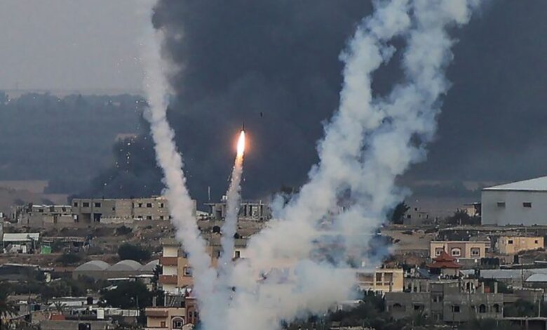 Se disparan cohetes desde el sur de la Franja de Gaza hacia Israel el 19 de octubre de 2023. Foto: AFP