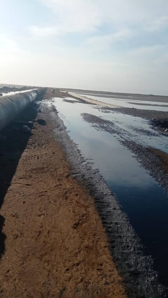 El río de petróleo que recorre más de 40 km2, según un estudio realizado por el especialista y biólogo Eduardo Klein, un tamaño que supera 5.000 canchas de fútbol y que no ha tenido atención por parte de Petróleos de Venezuela (Pdvsa) que son los encargados de estas tuberías que llevan crudo desde Bajo Grande en Zulia hasta la Península de Paraguaná para alimentar el Complejo Refinador de Paraguaná (CRP), donde se ubican las dos refinerías (Amuay y Cardón).