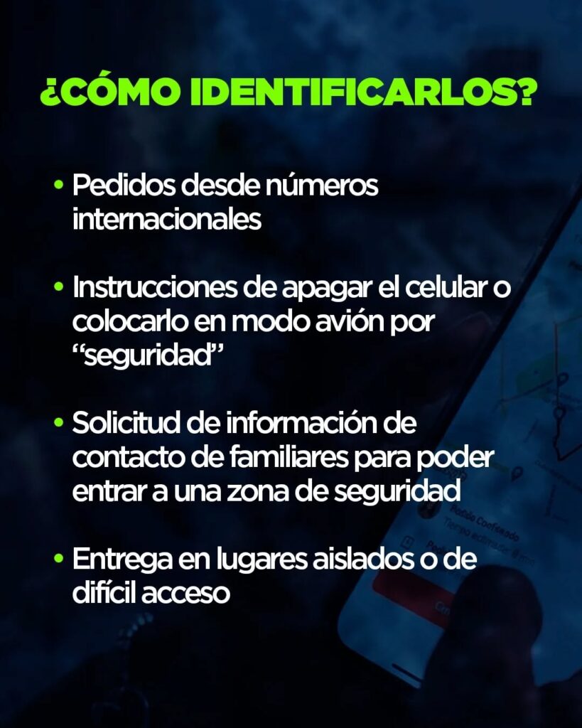 Debido al incremento de estos reportes, la PNB recomendó a los ciudadanos evitar el aislamiento durante las jornadas de trabajo, e instaron a los repartidores a compartir su ubicación en tiempo real con personas de confianza y a desconfiar de pedidos que exijan el cese de las comunicaciones personales.